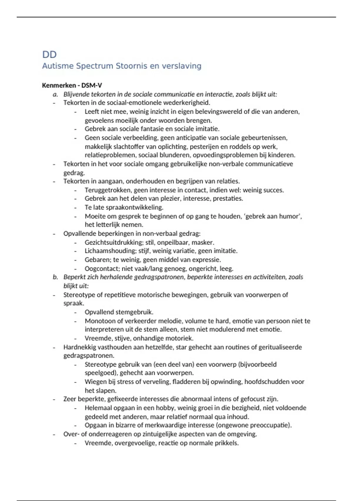 Kenmerken - DSM-V