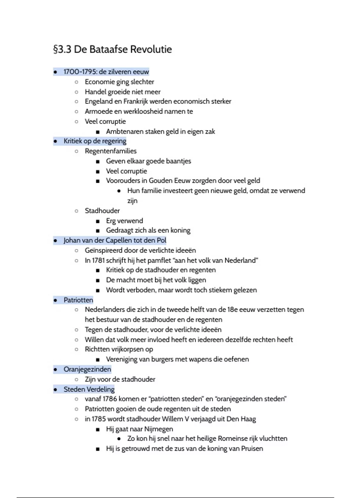 Les aantekeningen - Geschiedenis - §3.3 (Bataafse Republiek) en §3.4 (Tijd van Napoleon)