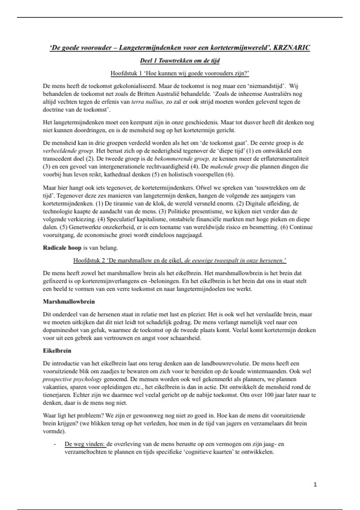 Samenvatting 'de goede voorouder' KRZNARIC