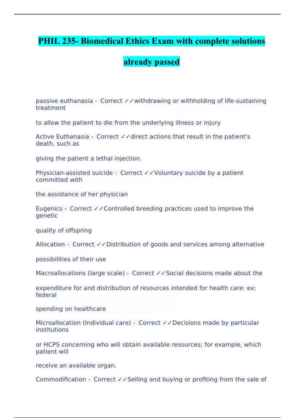 Physician-assisted suicide - Correct ✓✓Voluntary suicide by a patient