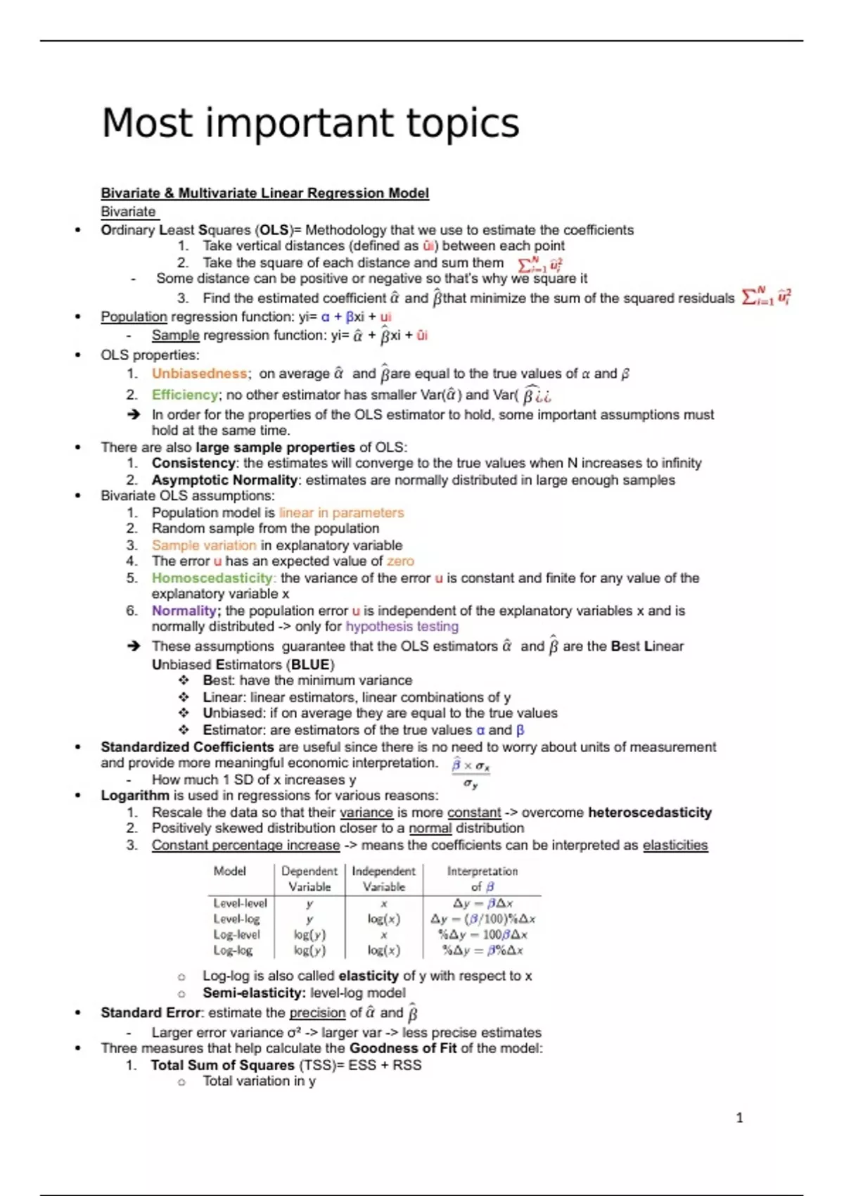 1. Total Sum of Squares (TSS)= ESS + RSS