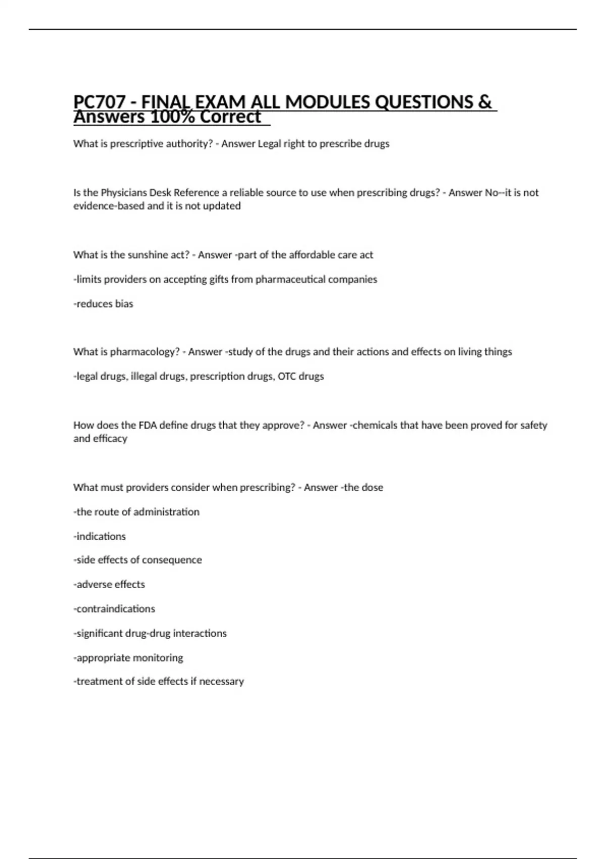 PC707 - FINAL EXAM ALL MODULES QUESTIONS & Answers 100% Correct