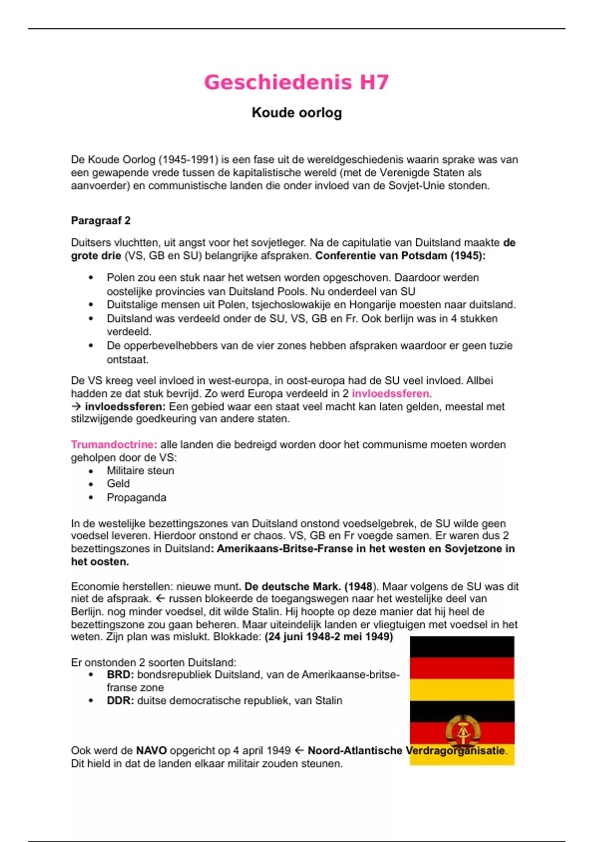 grote drie (VS, GB en SU) belangrijke afspraken. Conferentie van Potsdam (1945):