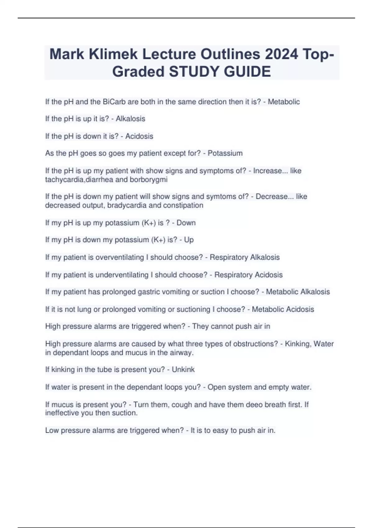 Mark Klimek Lecture Outlines 2024 Top-Graded STUDY GUIDE