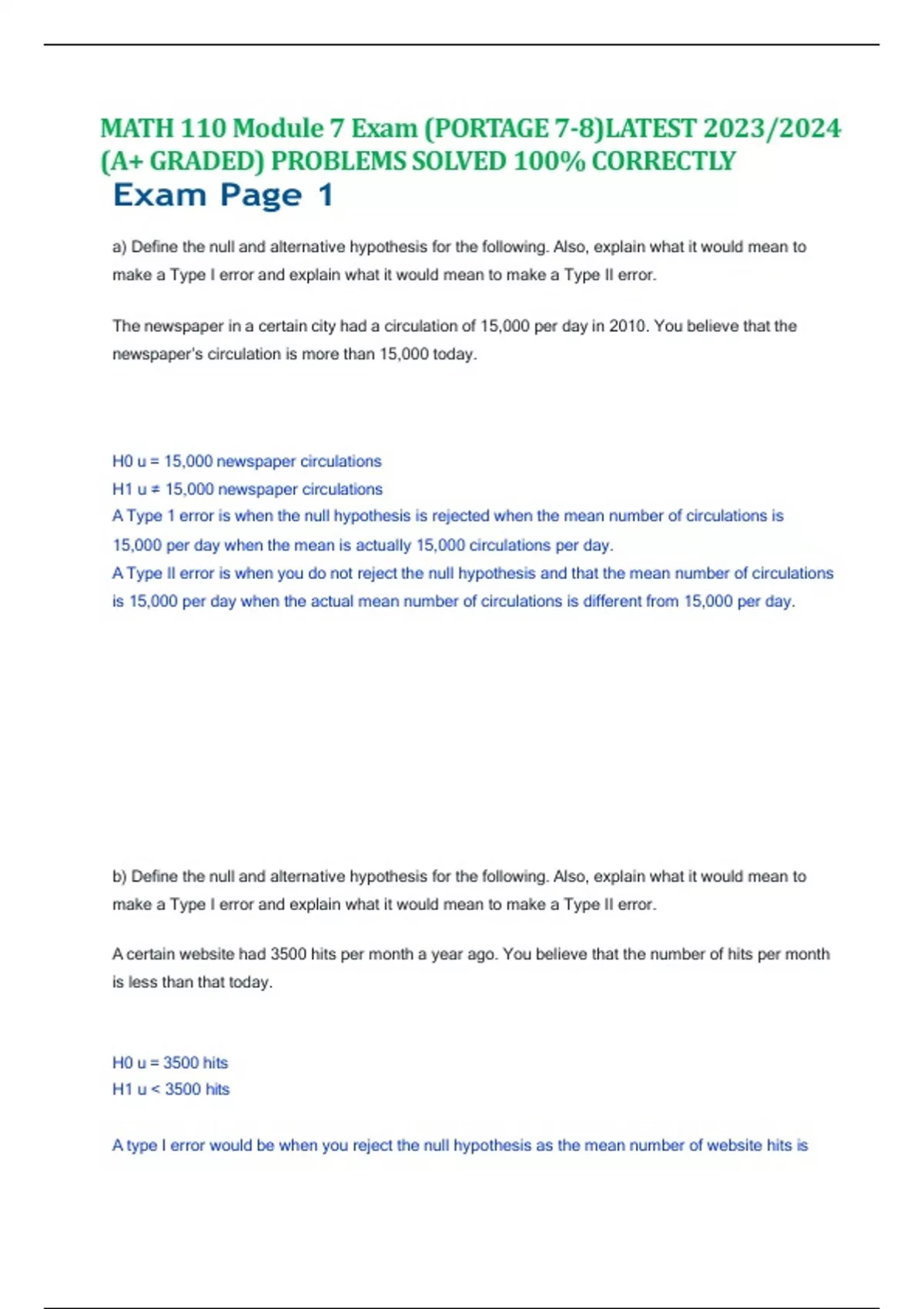 MATH 110 Module 7 Exam (PORTAGE 7-8)LATEST 2023/2024 (A+ GRADED) PROBLEMS SOLVED 100% CORRECTLY