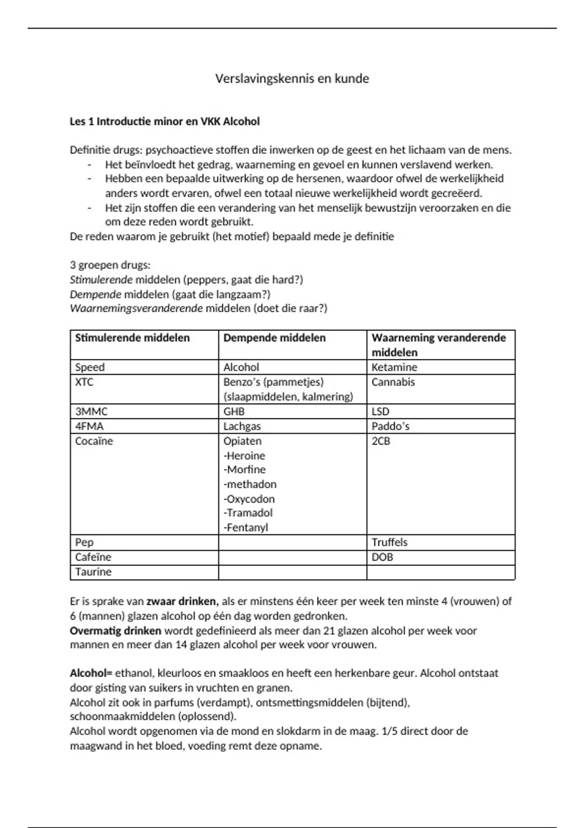 Les 1 Introductie minor en VKK Alcohol