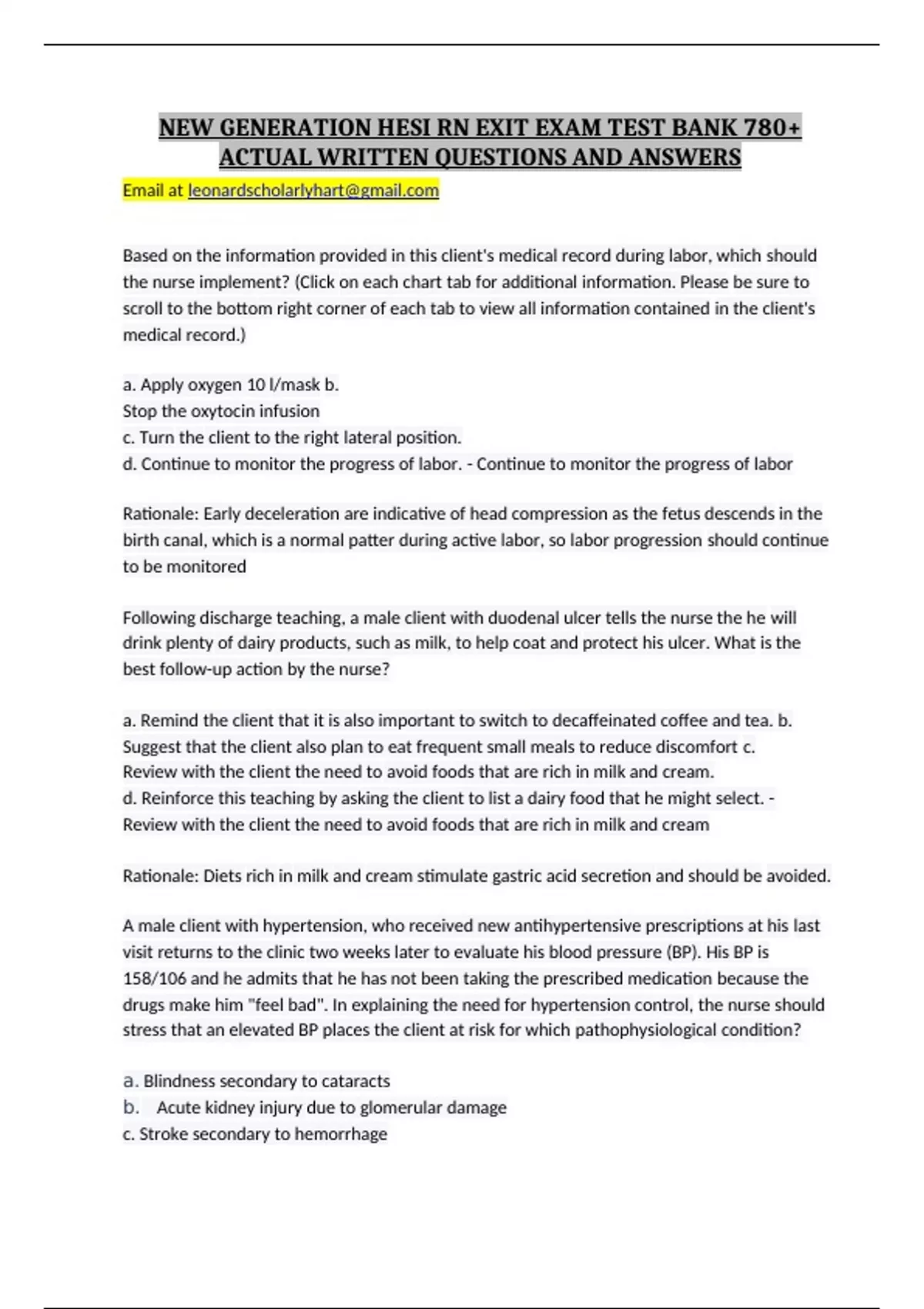 NEW GENERATION HESI RN EXIT EXAM TEST BANK