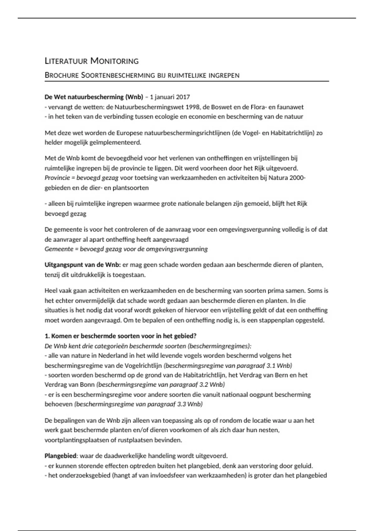 Samenvatting van de literatuur voor het vak Monitoring. Blok 4, jaar 2 van de opleiding Landscape and Environment Management.