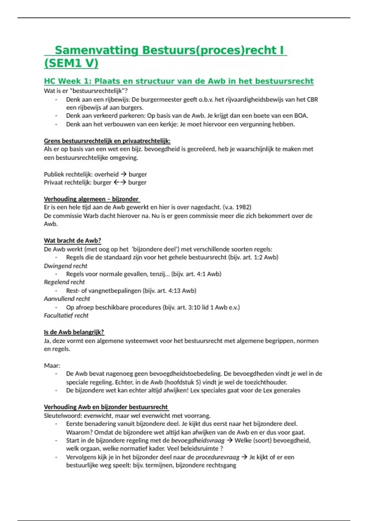HC Week 1: Plaats en structuur van de Awb in het bestuursrecht