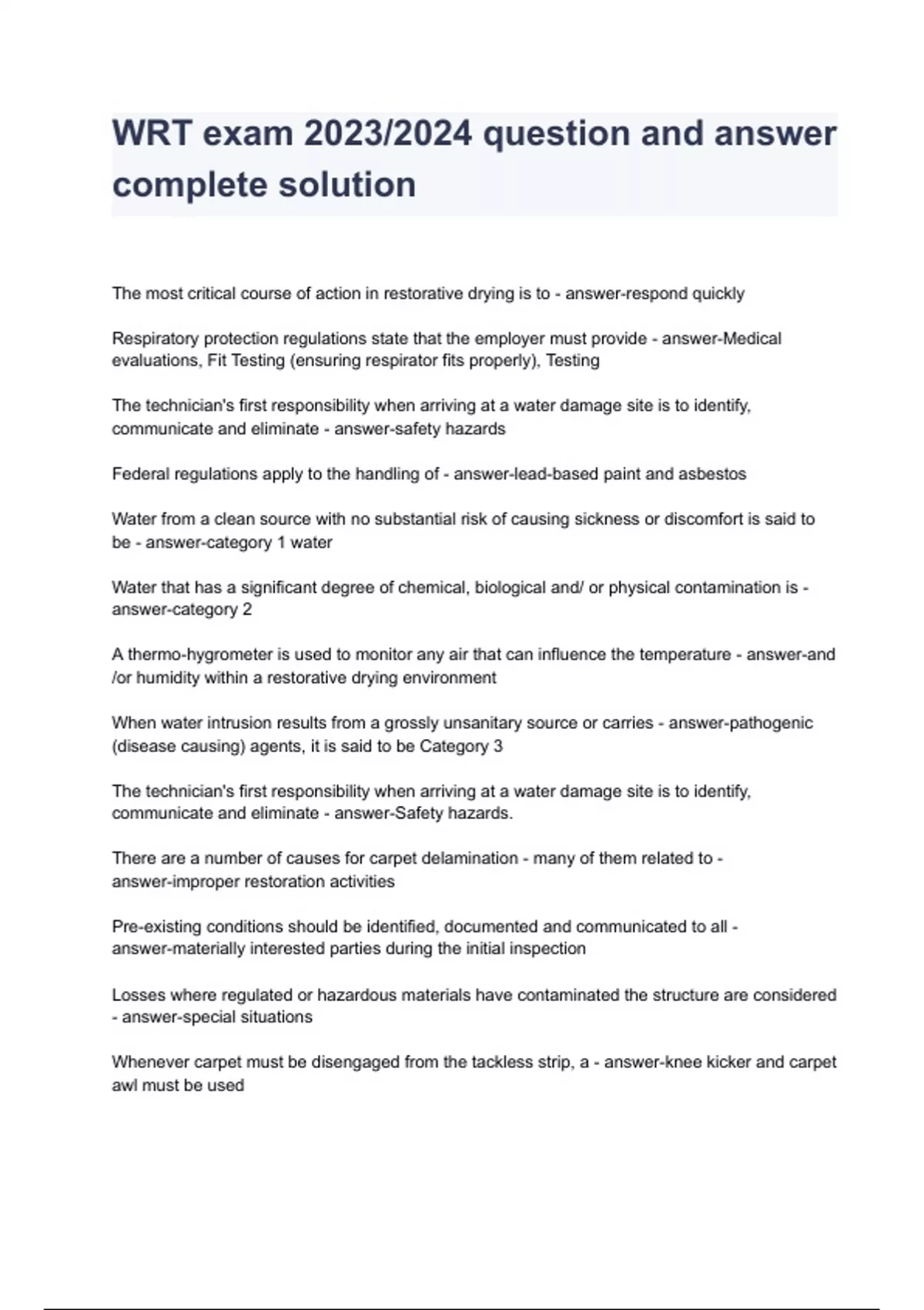 wrt exam question and answer complete so