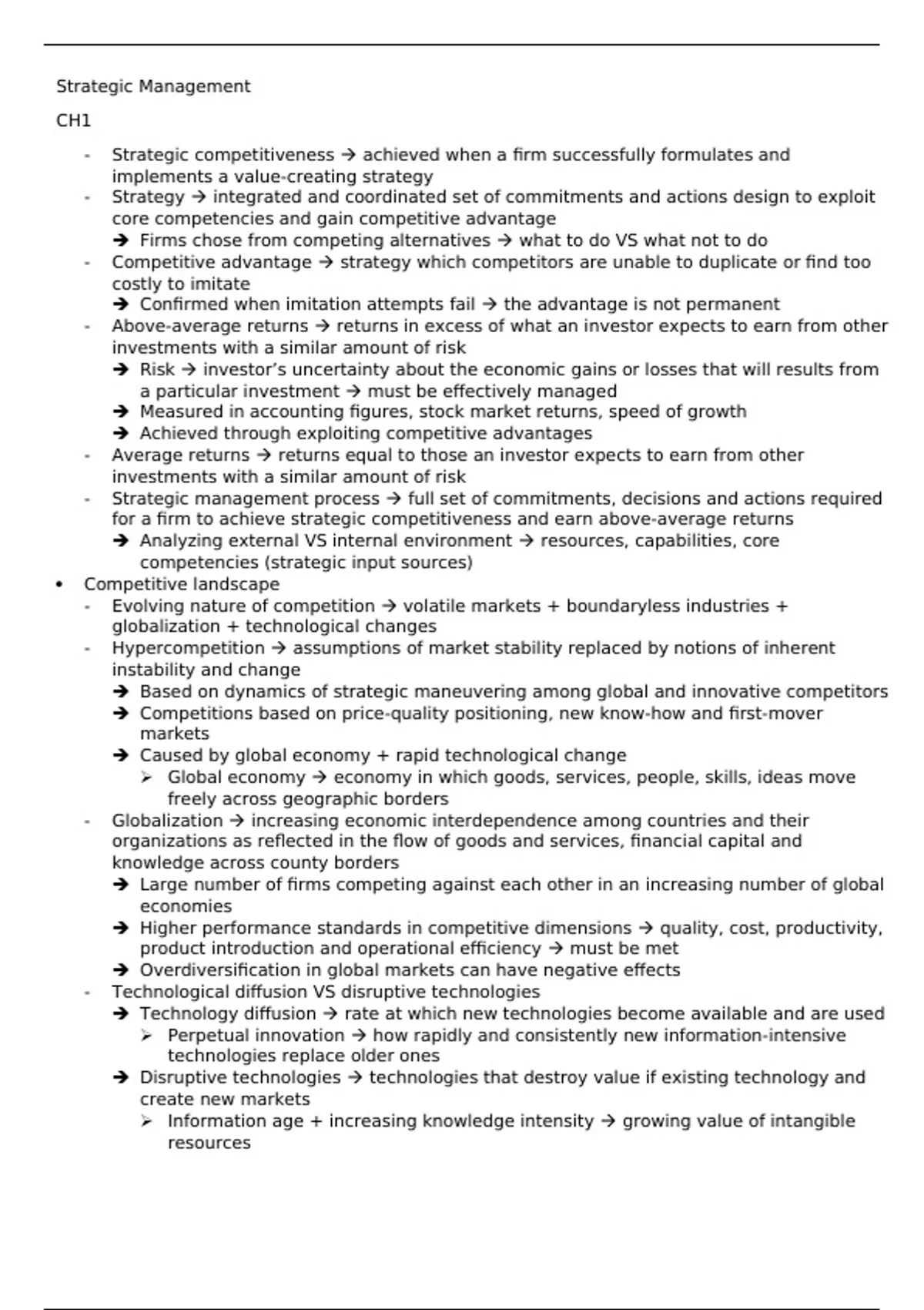 Full summary of all assigned chapter and additiona readings Porter, Barney, Prahalad, Hambick, O'Rielly