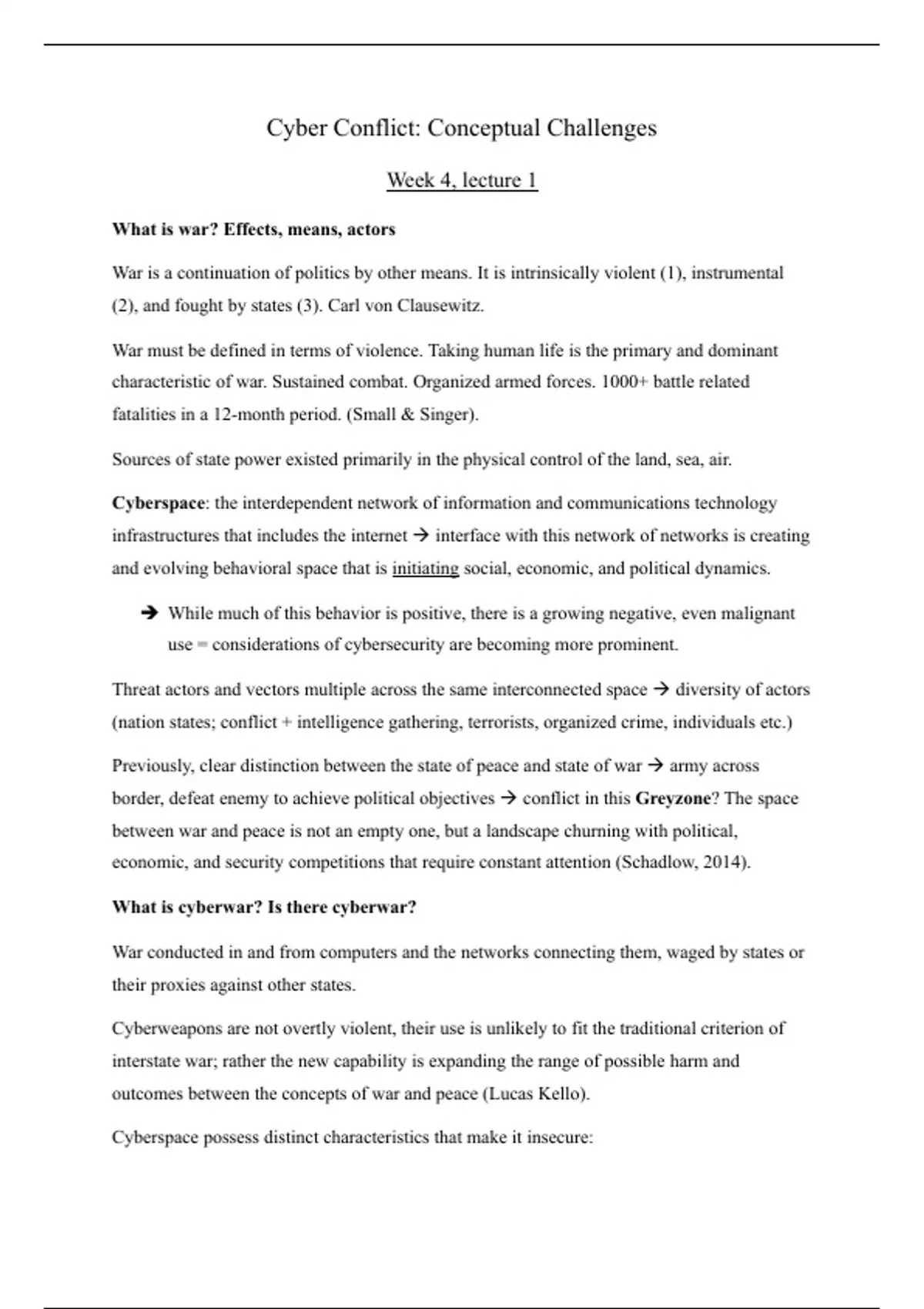 outcomes between the concepts of war and peace (Lucas Kello).