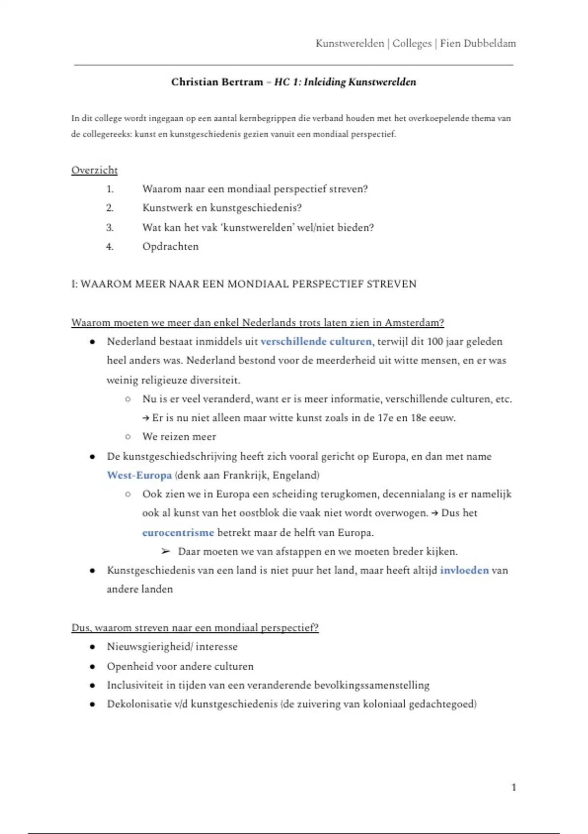 Christian Bertram – HC 1: Inleiding Kunstwerelden