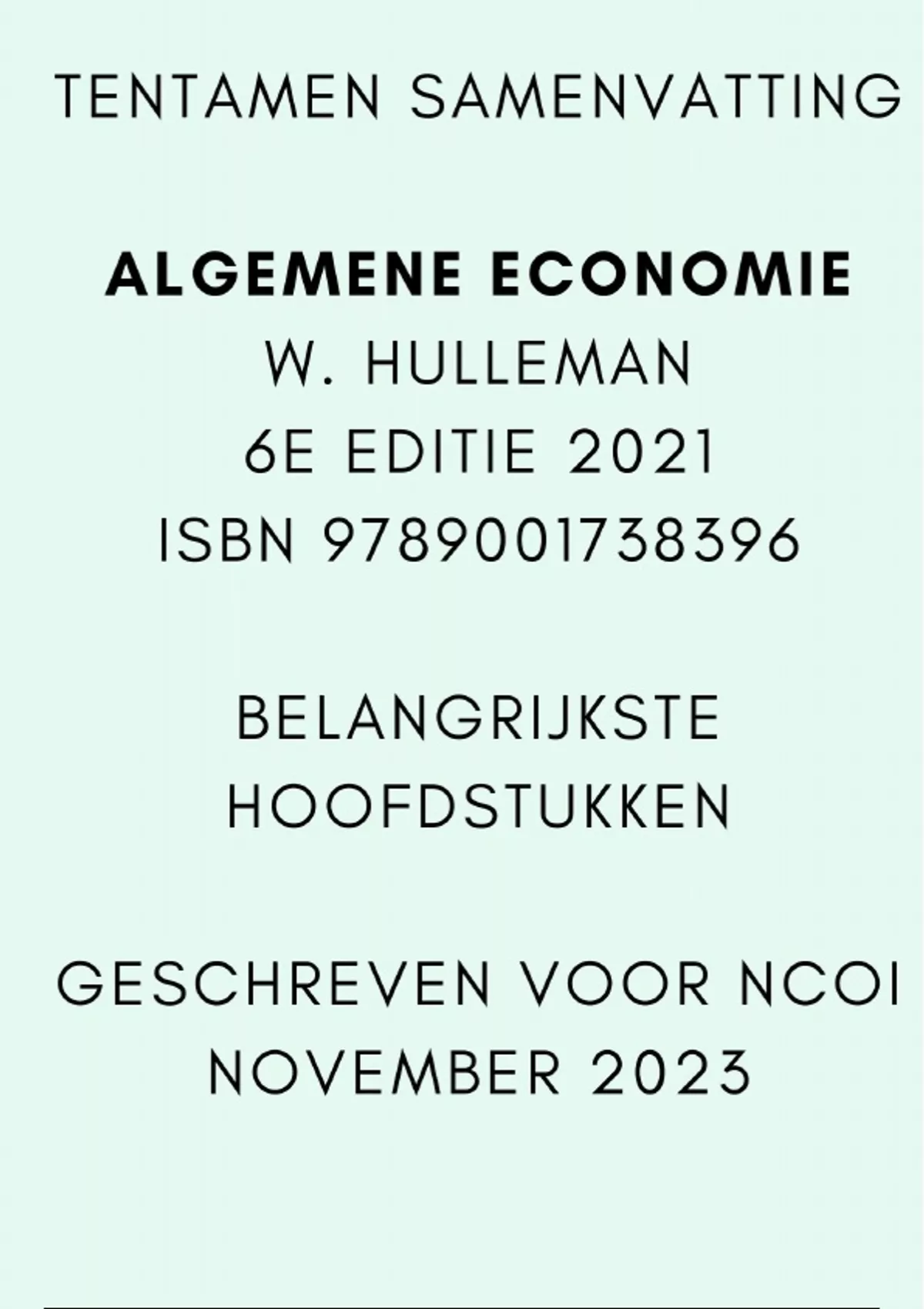 welvaart. Algemene Economie: