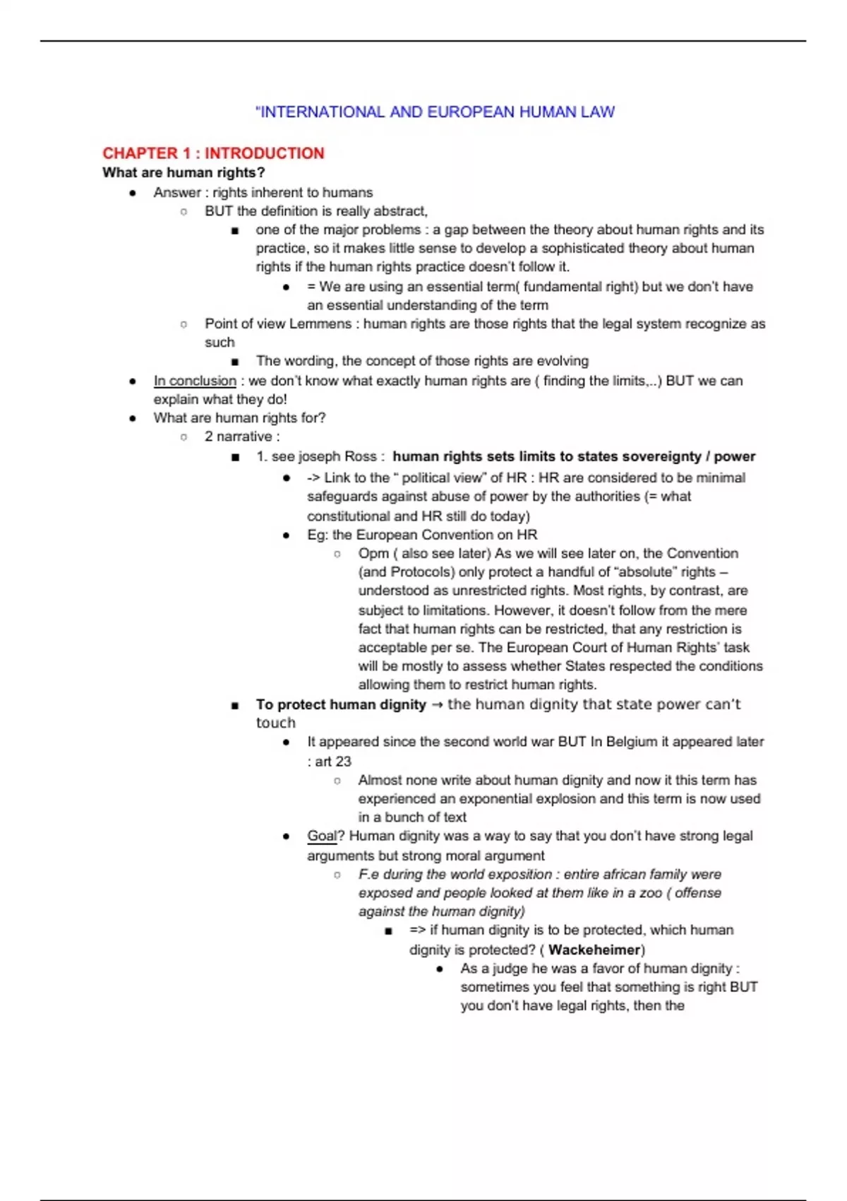 ○ Point of view Lemmens : human rights are those rights that the legal system recognize as