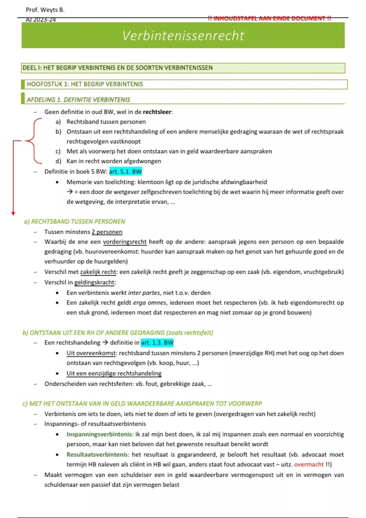 Volledige samenvatting VERBINTENISSENRECHT - prof. dr. Weyts - AJ 23-24