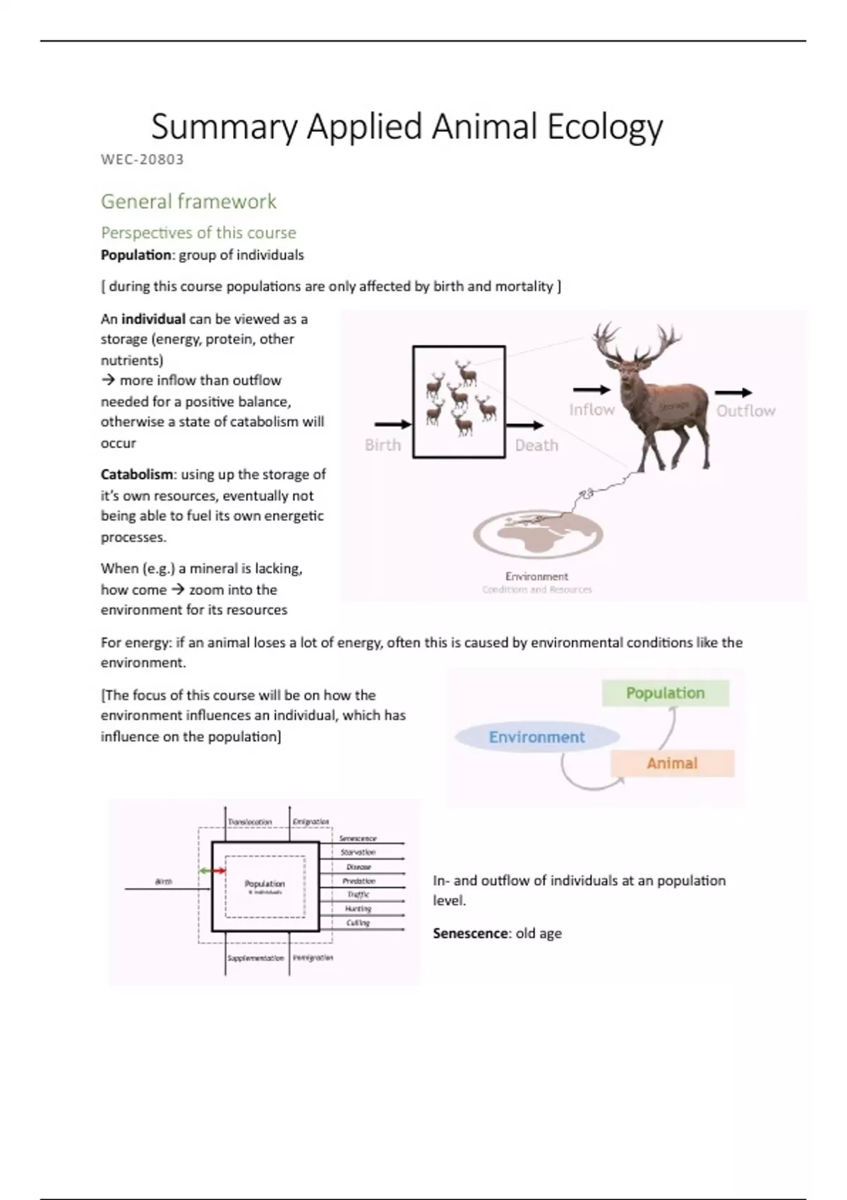 Een volledige samenvatting van alle lectures met bijbehorende graphical abstracts van het vak Applied animal ecology aan de WUR. De samenvatting is volledig in Engels, met enkele lastige woorden cursief in het Nederlands vertaald. Met de samenvatting heb ik een ruime voldoende weten te halen.