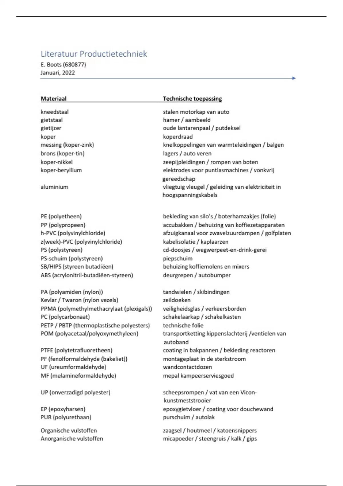 Literatuur Productietechniek
