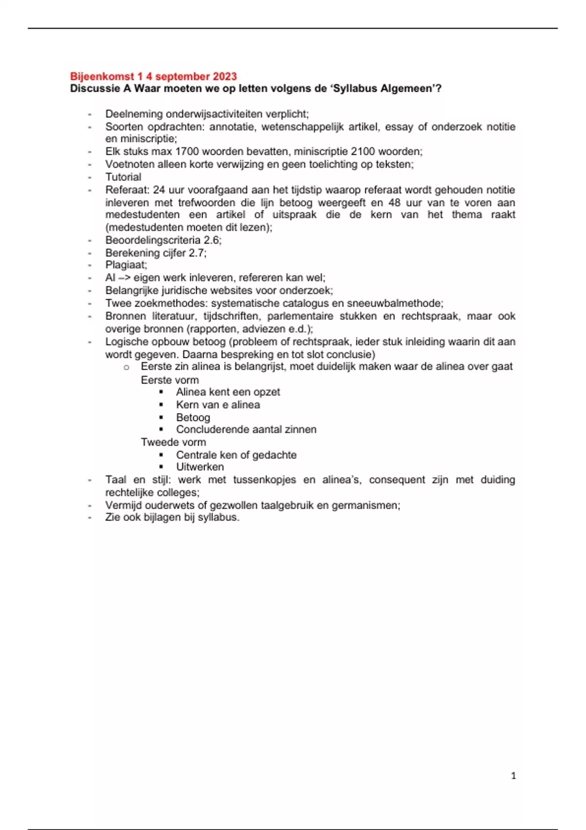 - Logische opbouw betoog (probleem of rechtspraak, ieder stuk inleiding waarin dit aan