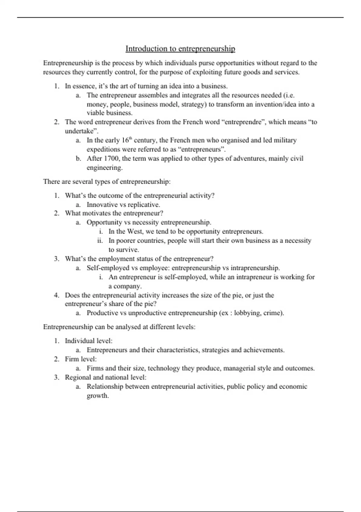 HBA20c - Entrepreneurship and Business Planning - Summary 23/24: class notes + additional info from the book "Entrepreneurship: Successfully Launching New Ventures"