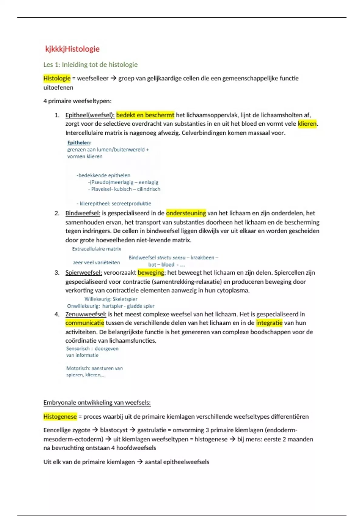 Histogenese = proces waarbij uit de primaire kiemlagen verschillende weefseltypes differentiëren