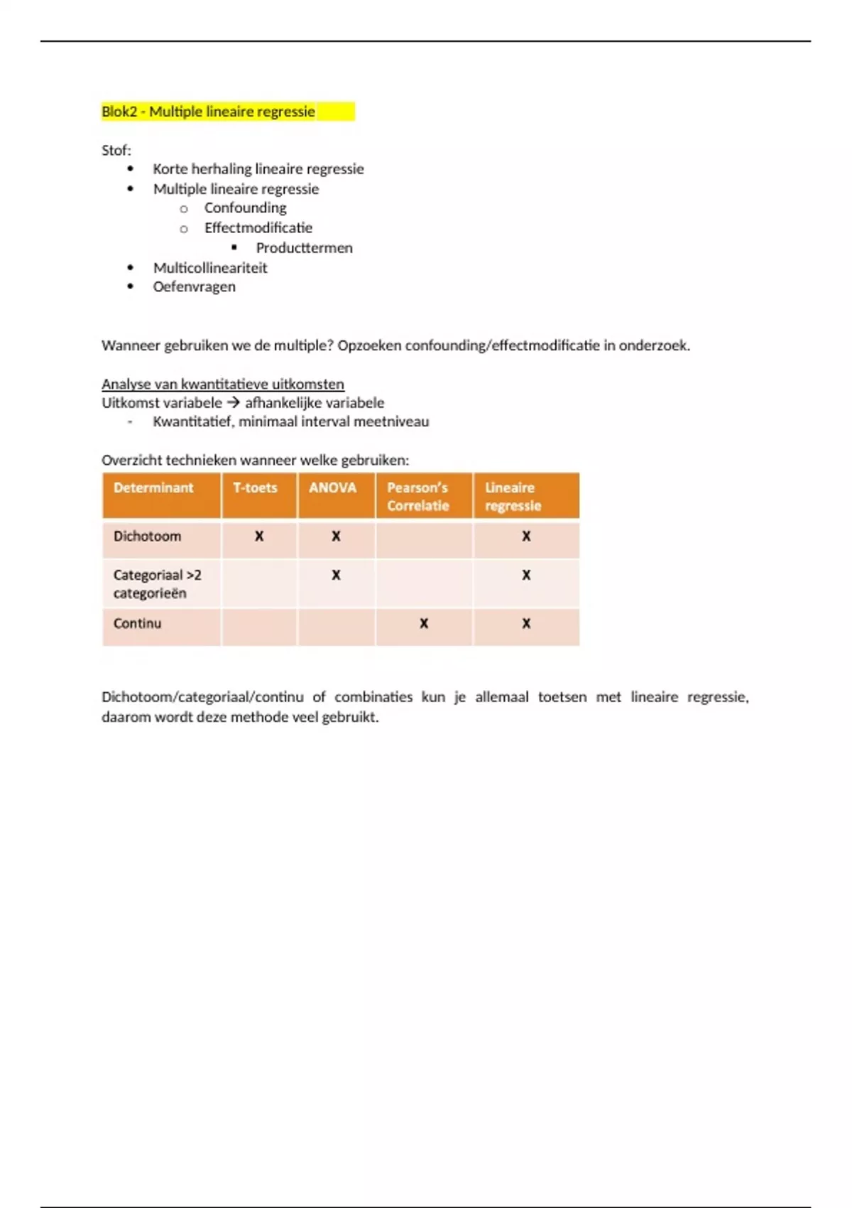 MTB2 Samenvatting blok 2 multipele lineaire regressie - premaster gezondheidswetenschappen VU