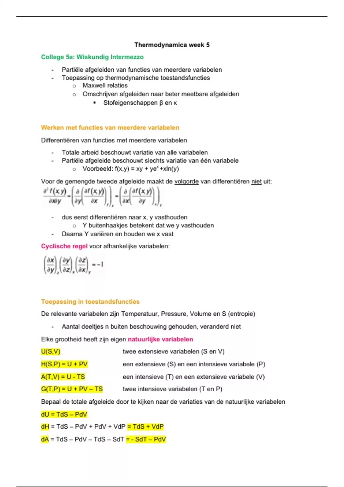 - Toepassing op thermodynamische toestandsfuncties