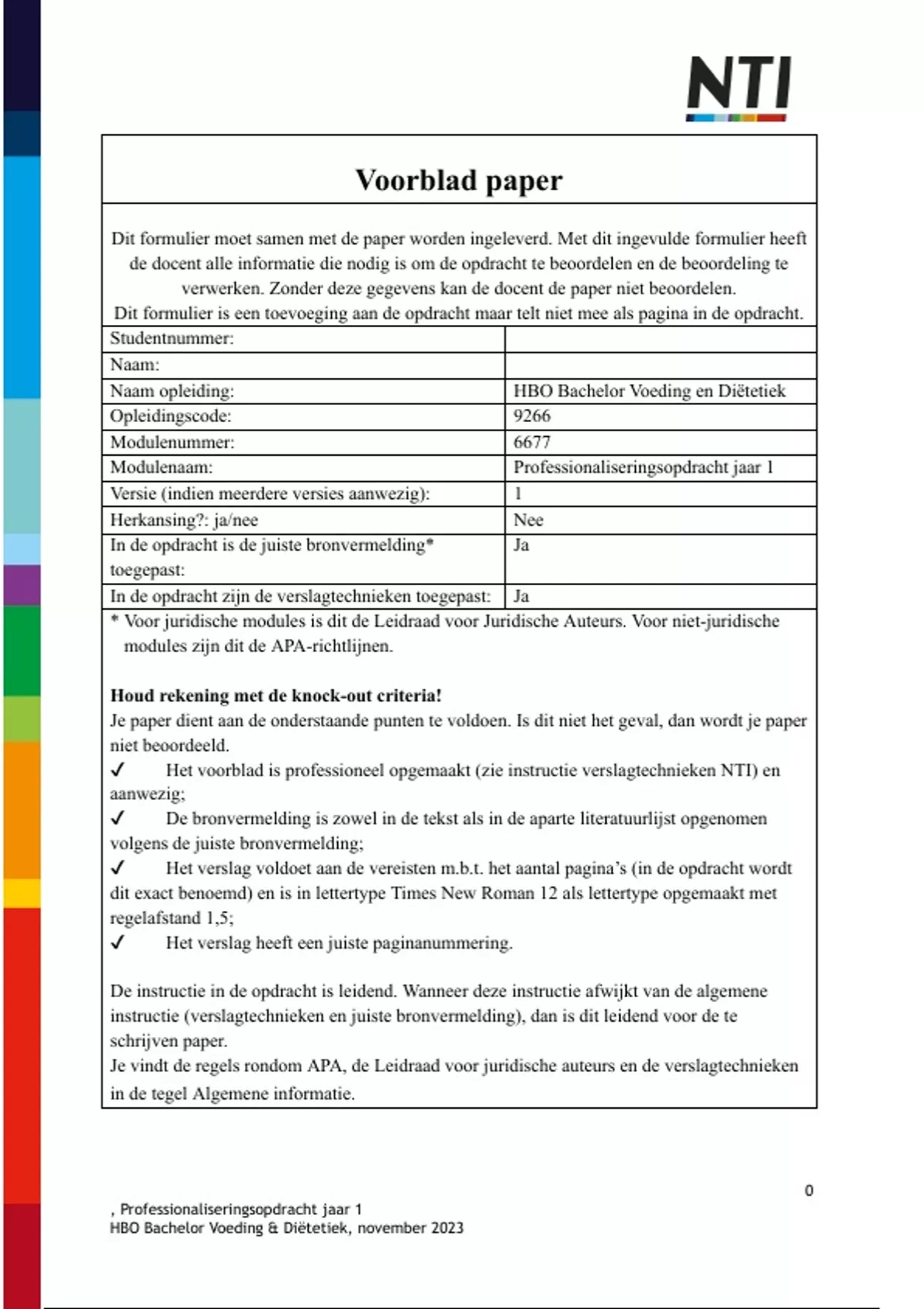 verwerken. Zonder deze gegevens kan de docent de paper niet beoordelen.