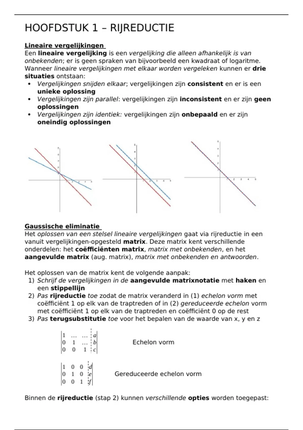 coëfficiënt 1 op elk van de traptreden of in (2) gereduceerde echelon vorm