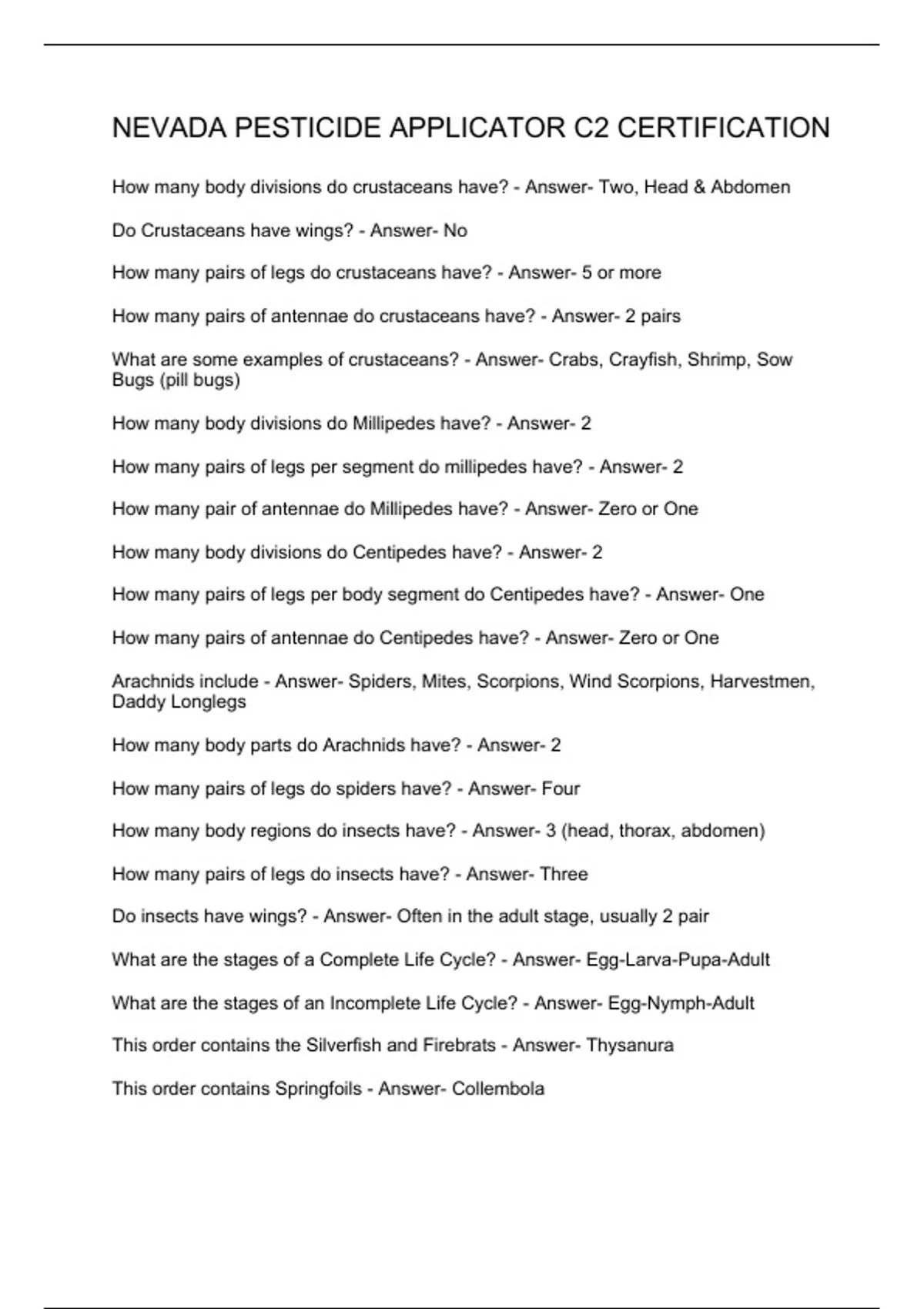 NEVADA PESTICIDE APPLICATOR C2 CERTIFICATION