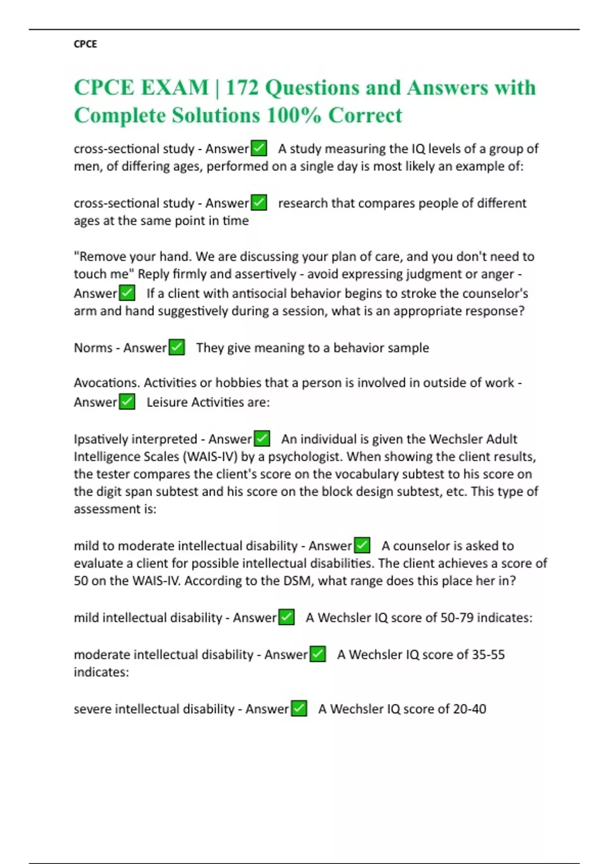 CPCE EXAM | 172 Questions and Answers with Complete Solutions 100% Correct