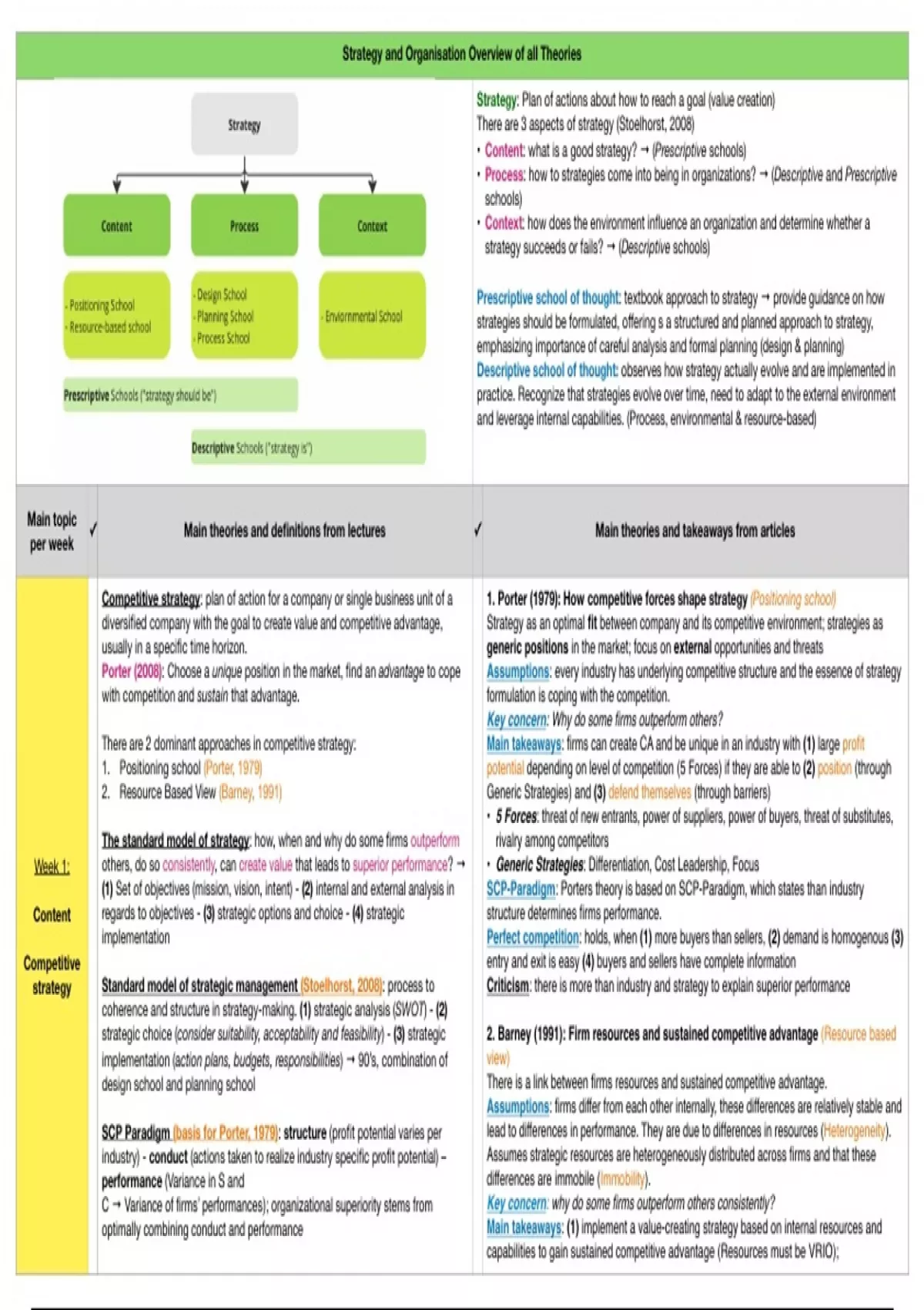 Link: non-substitutability similar to threat of substitutes & inimitability similar to Main takeaways: (1) There are 3 aspects to strategic management (Content, Process,