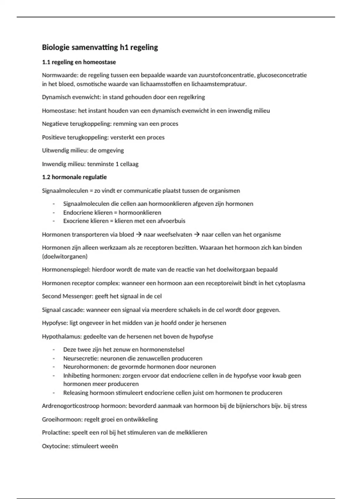 Biologie samenvatting h1 regeling