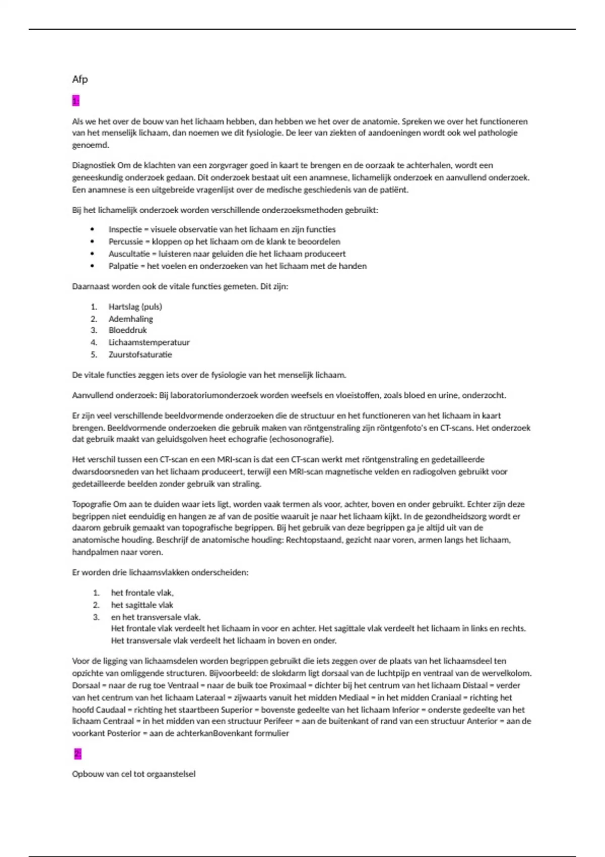 Opbouw van cel tot orgaanstelsel