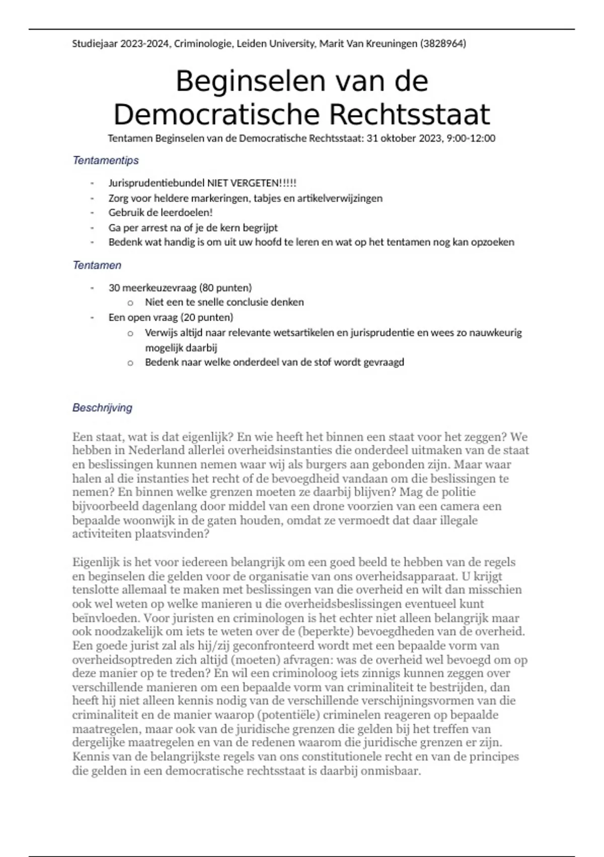 Beginselen van de Democratische Rechtsstaat: volledig studiedocument (Universiteit Leiden)