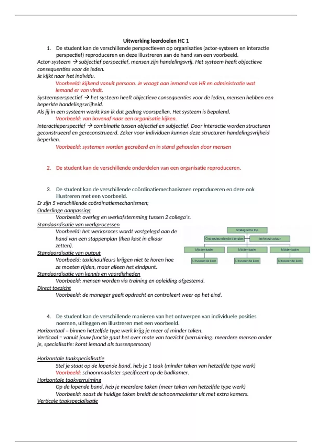 1. De student kan de verschillende perspectieven op organisaties (actor-systeem en interactie