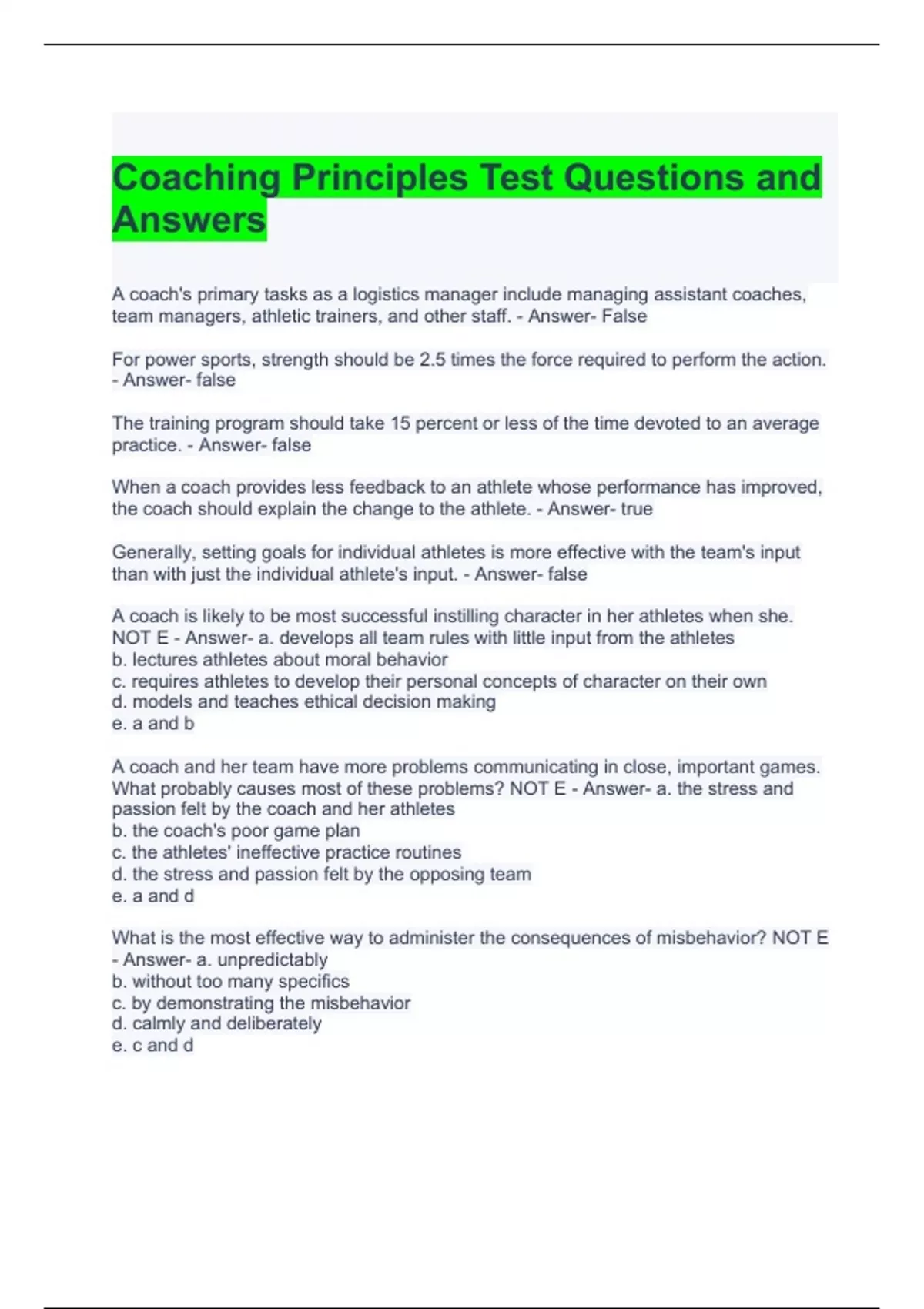 Coaching Principles Test Questions and Answers