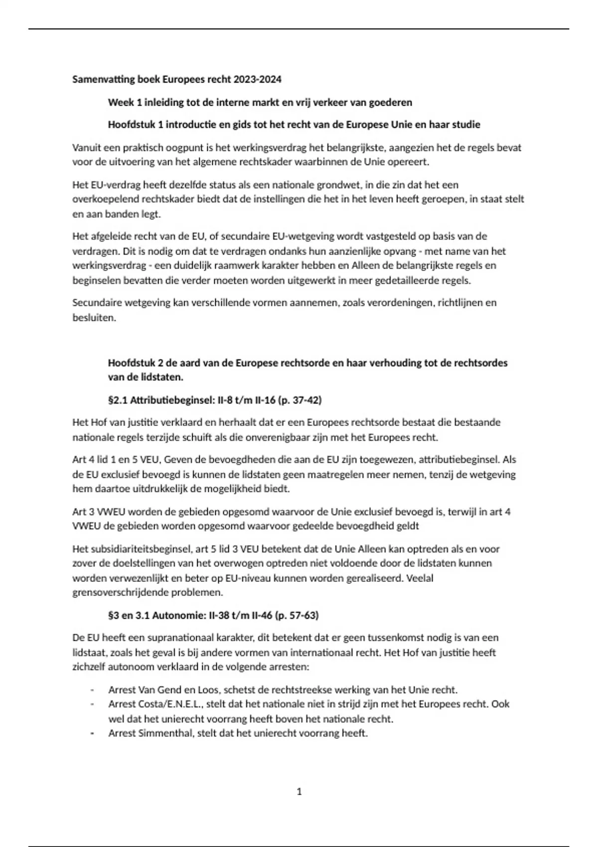 Samenvatting van alle voorgeschreven hoofdstukken en paragrafen van het boek: Recht van de Europese Unie. Alles is overzichtelijk weergegeven, waardoor je bij elk stuk tekst, het hoofdstuk weet en de paragraaf, hierdoor is alles gemakkelijk per onderwerp te vinden en als je het boek hebt, gemakkelijk terug te vinden. De arresten die in het boek genoemd worden, worden ook uitgewerkt.