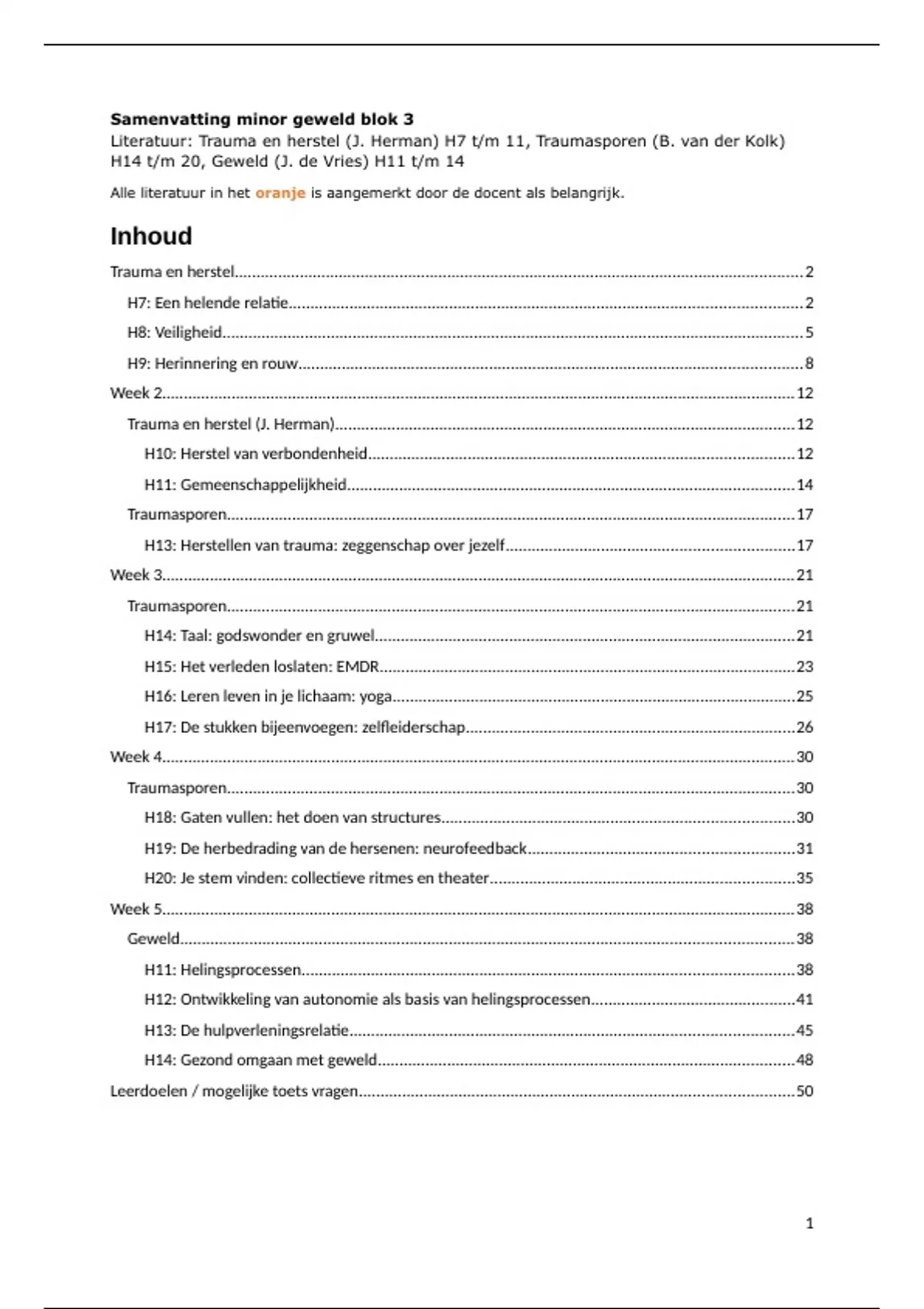 Alle literatuur in het oranje is aangemerkt door de docent als belangrijk.