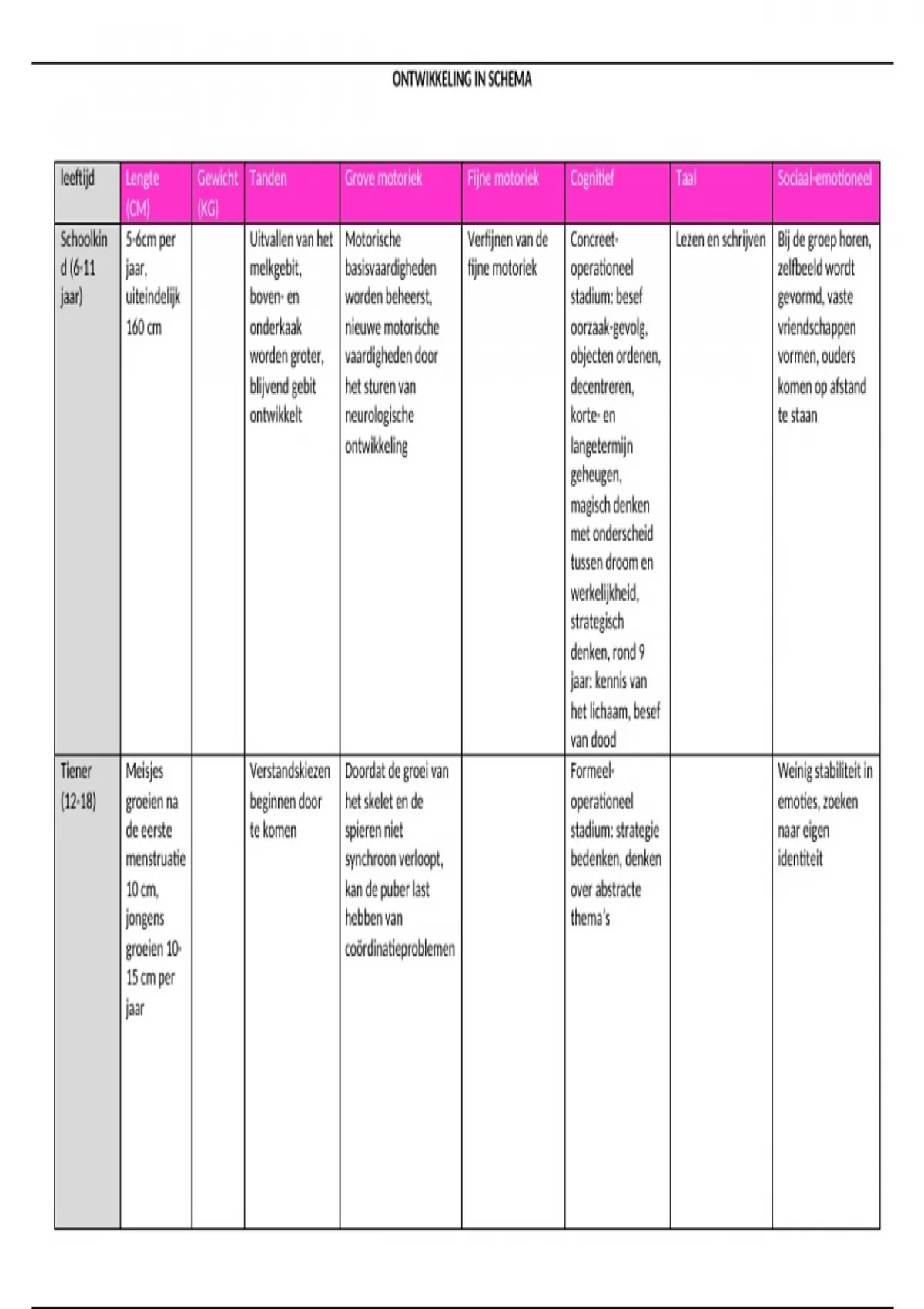 leeftijd Lengte Gewicht Tanden Grove motoriek Fijne motoriek Cognitief Taal Sociaal-emotioneel