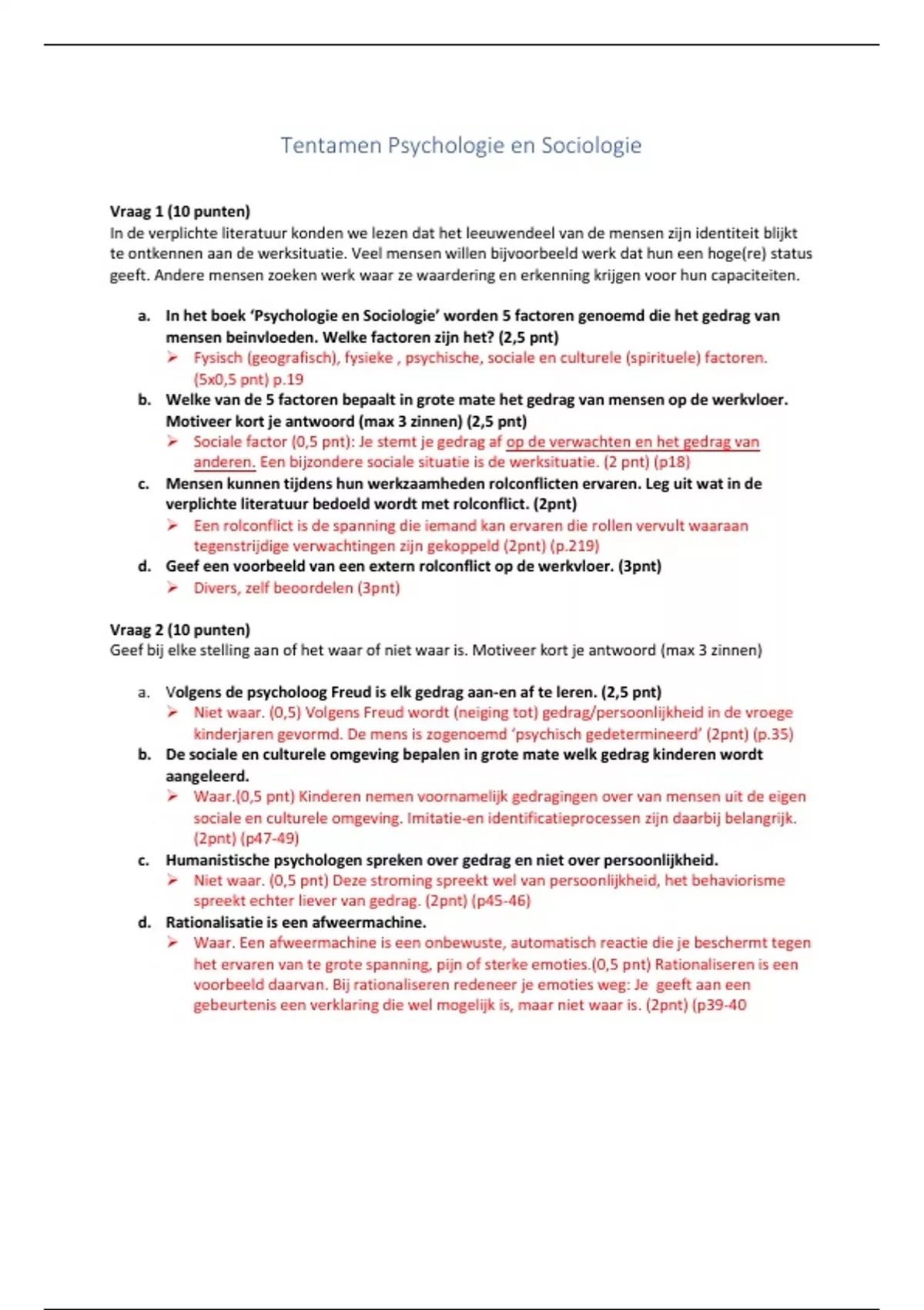 Tentamen (uitwerkingen) psychologie en sociologie Psychologie en Sociologie