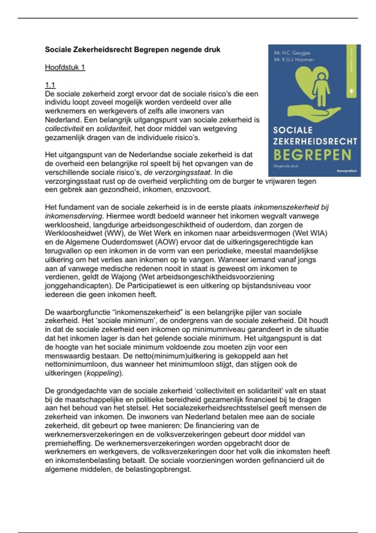 Nederland. Een belangrijk uitgangspunt van sociale zekerheid is