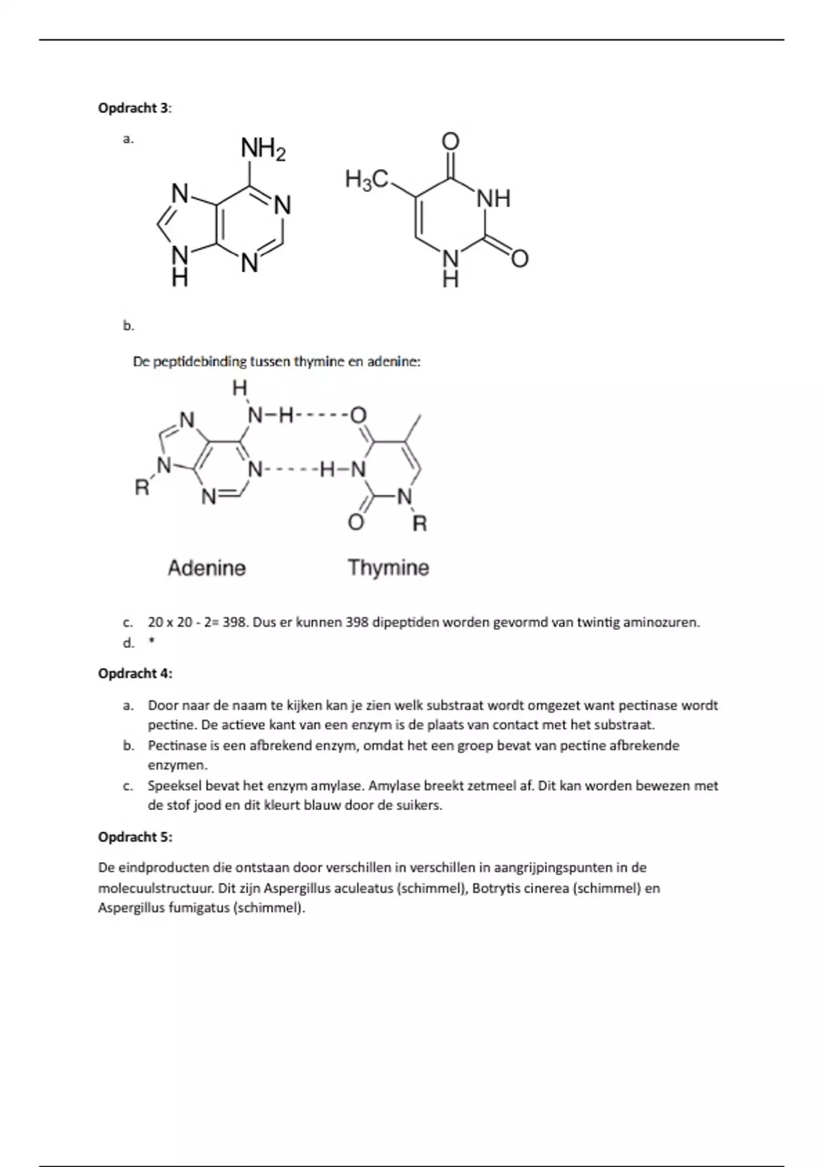 a. Door naar de naam te kijken kan je zien welk substraat wordt omgezet want pectinase wordt