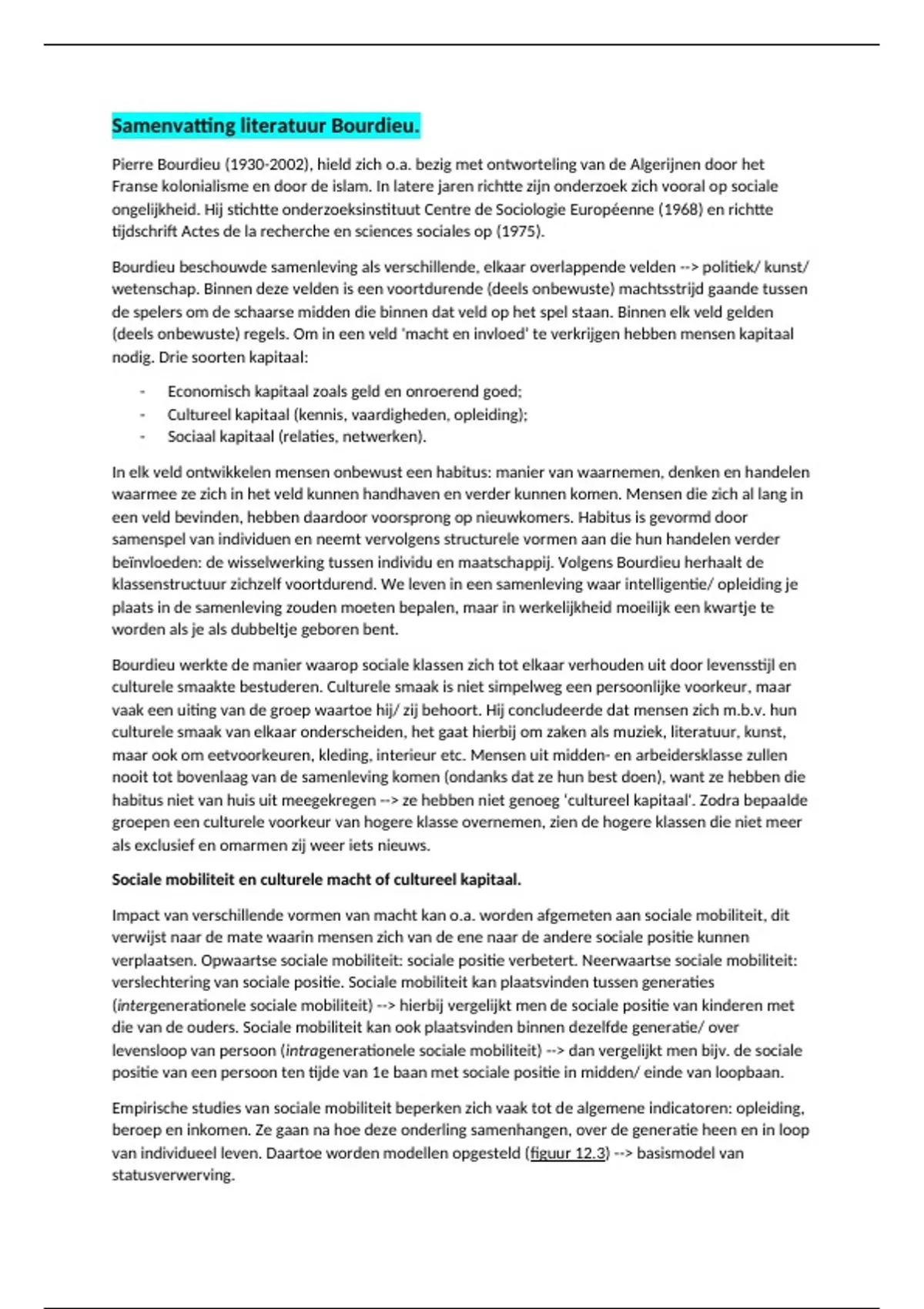 Sociale mobiliteit en culturele macht of cultureel kapitaal.
