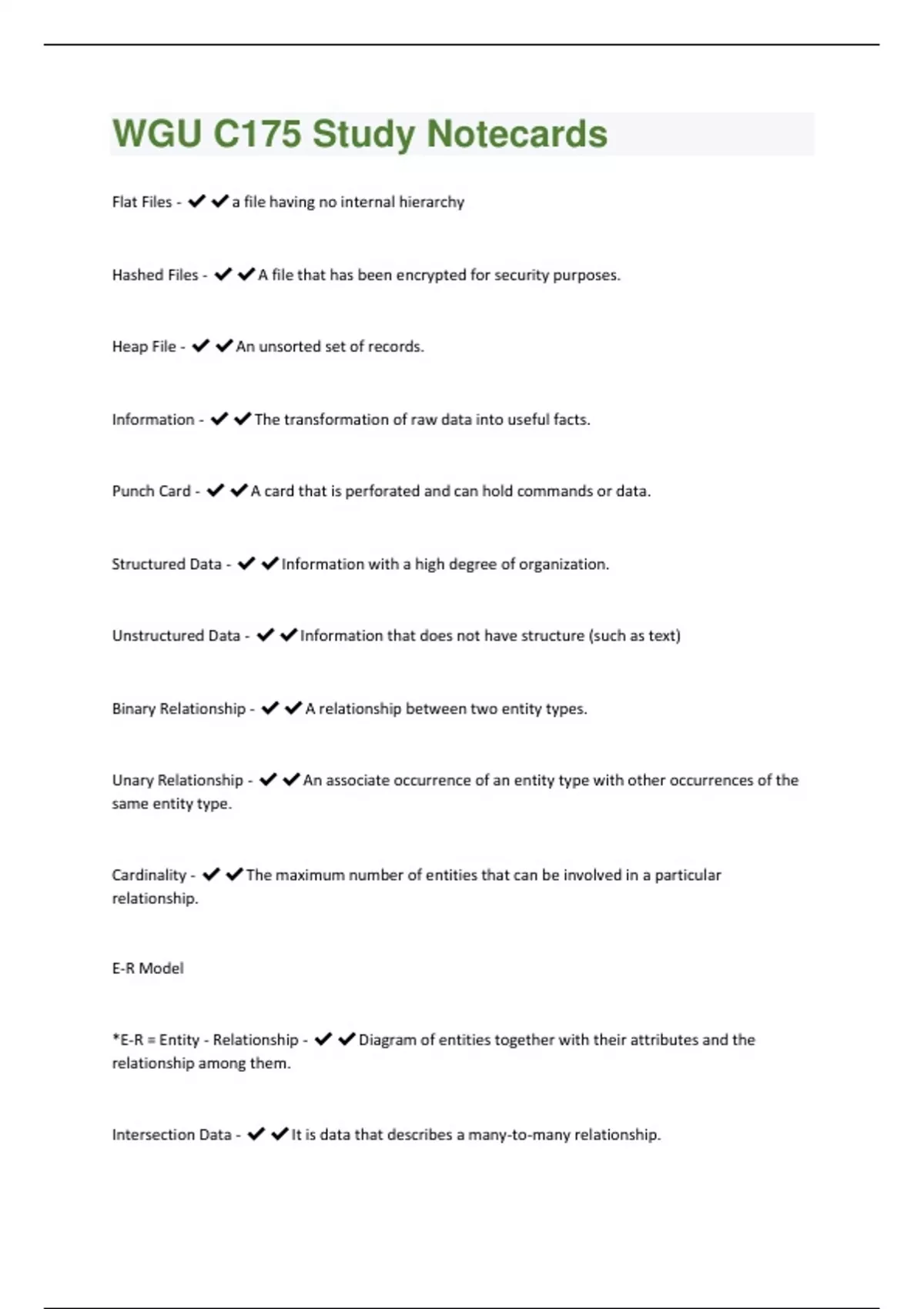 WGU C175 Study Notecards Questions With 100% Correct Solutions.