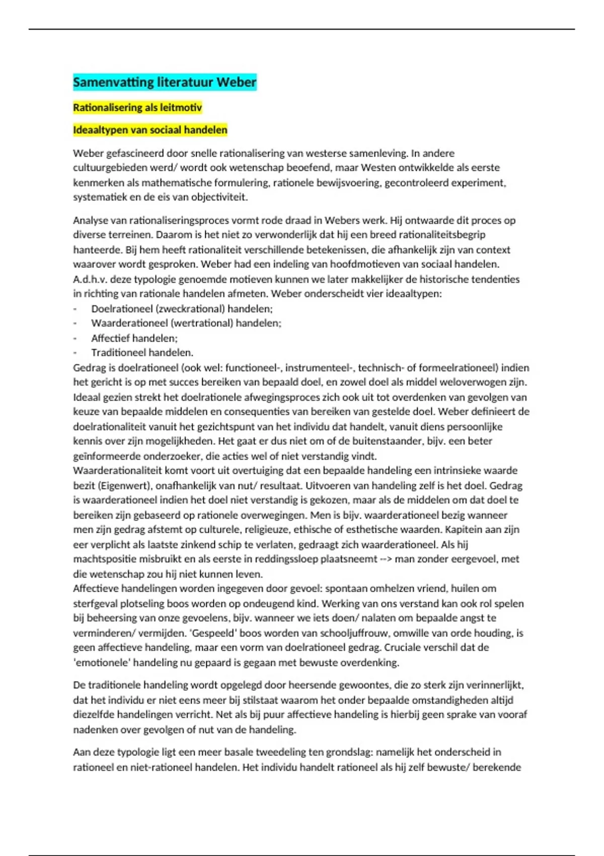 in richting van rationale handelen afmeten. Weber onderscheidt vier ideaaltypen: