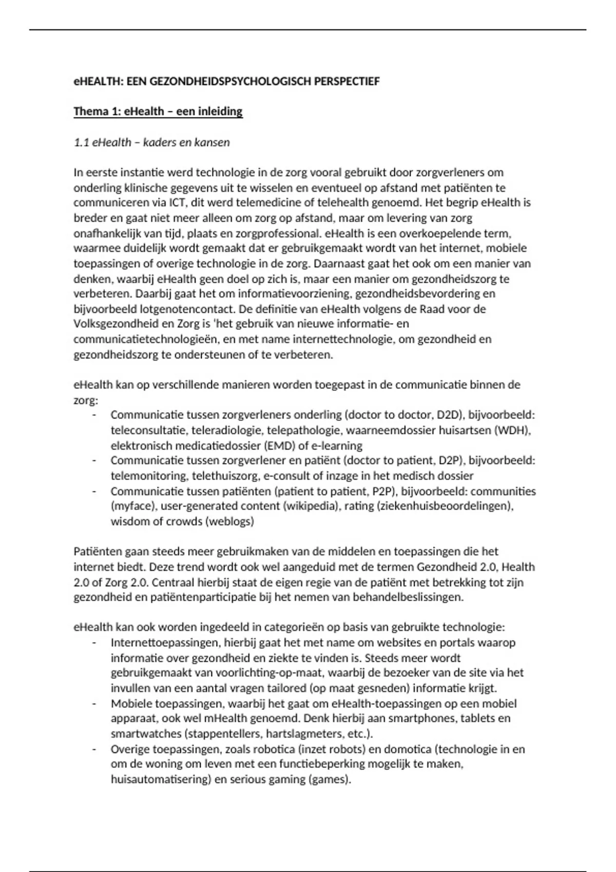 eHEALTH: EEN GEZONDHEIDSPSYCHOLOGISCH PERSPECTIEF