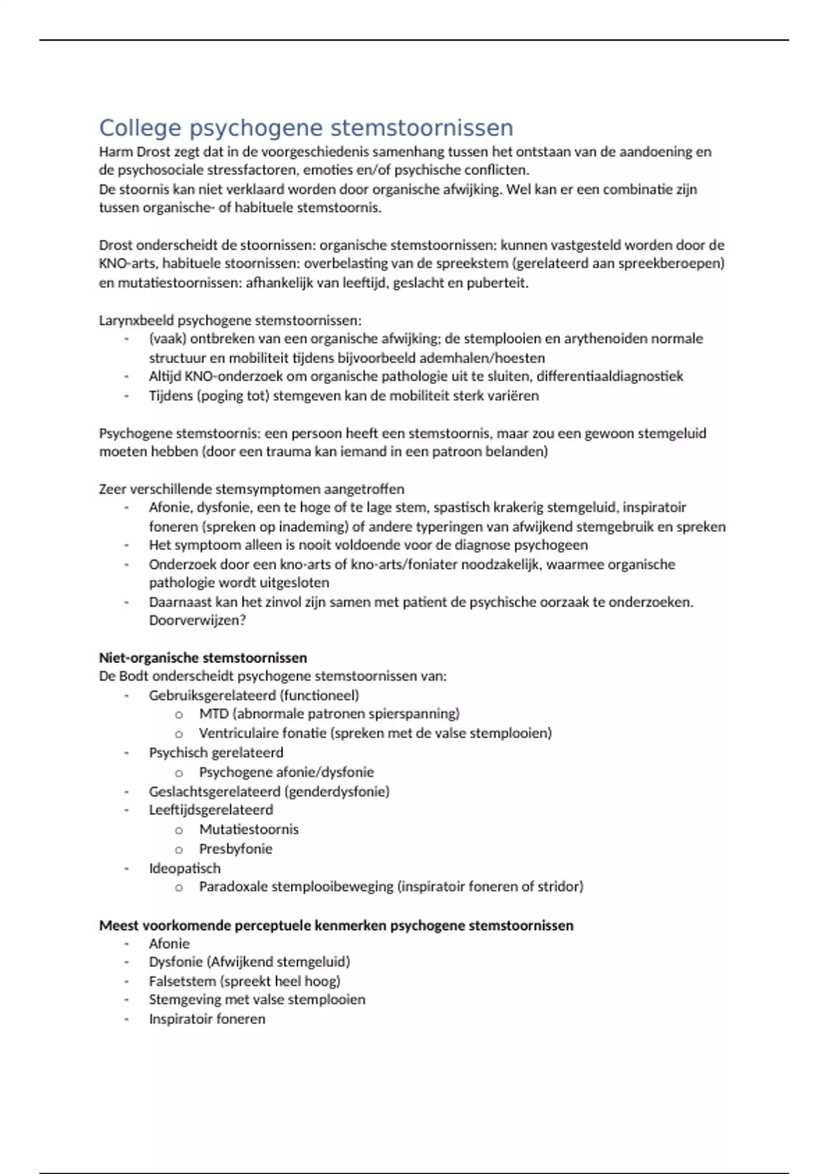 Deze samenvatting bevat alle informatie voor het tentamen stemstoornissen 2.