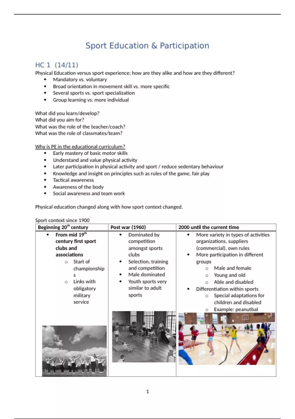 All lecture slides given in the course Sports Education and Participation, part of the minor Sport Science. Also includes personal notes, further explanations of the theory, and information about informative articles to the theory.