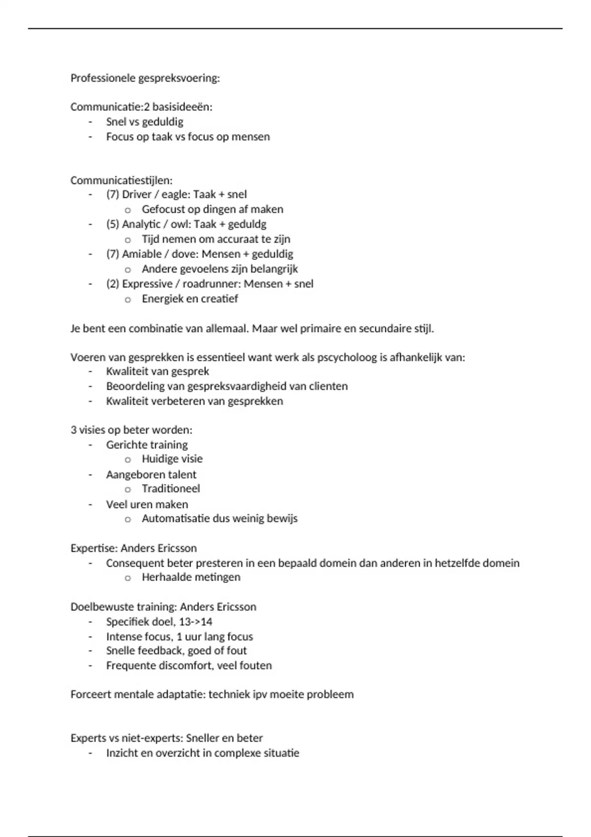 Samenvatting Aantekeningen - Professionele gespreksvoering